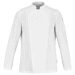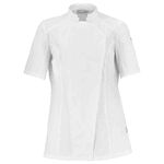 Men's short-sleeve jacket featuring a breathable fabric blend and mesh panels. The statement asymmetric front with hidden fastenings gives a functional design a modern and subtle twist. The sportswear-style elasticated centre back provides a comfortable and flexible fit, which is exactly what busy chefs need as they move around the kitchen.